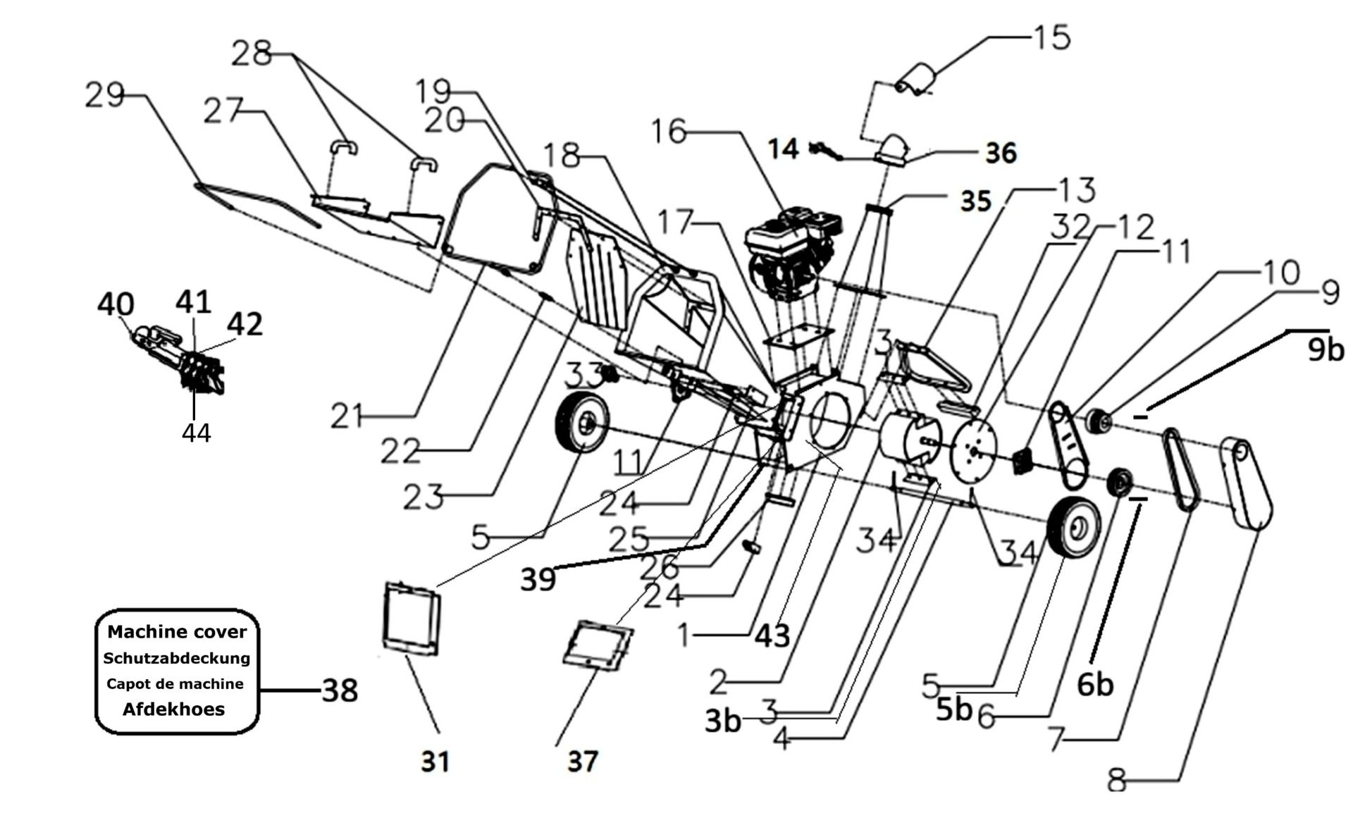 Onderstaand de onderdelentekening en onderdelenlijst van de PRO-22 S1 hakselaar.